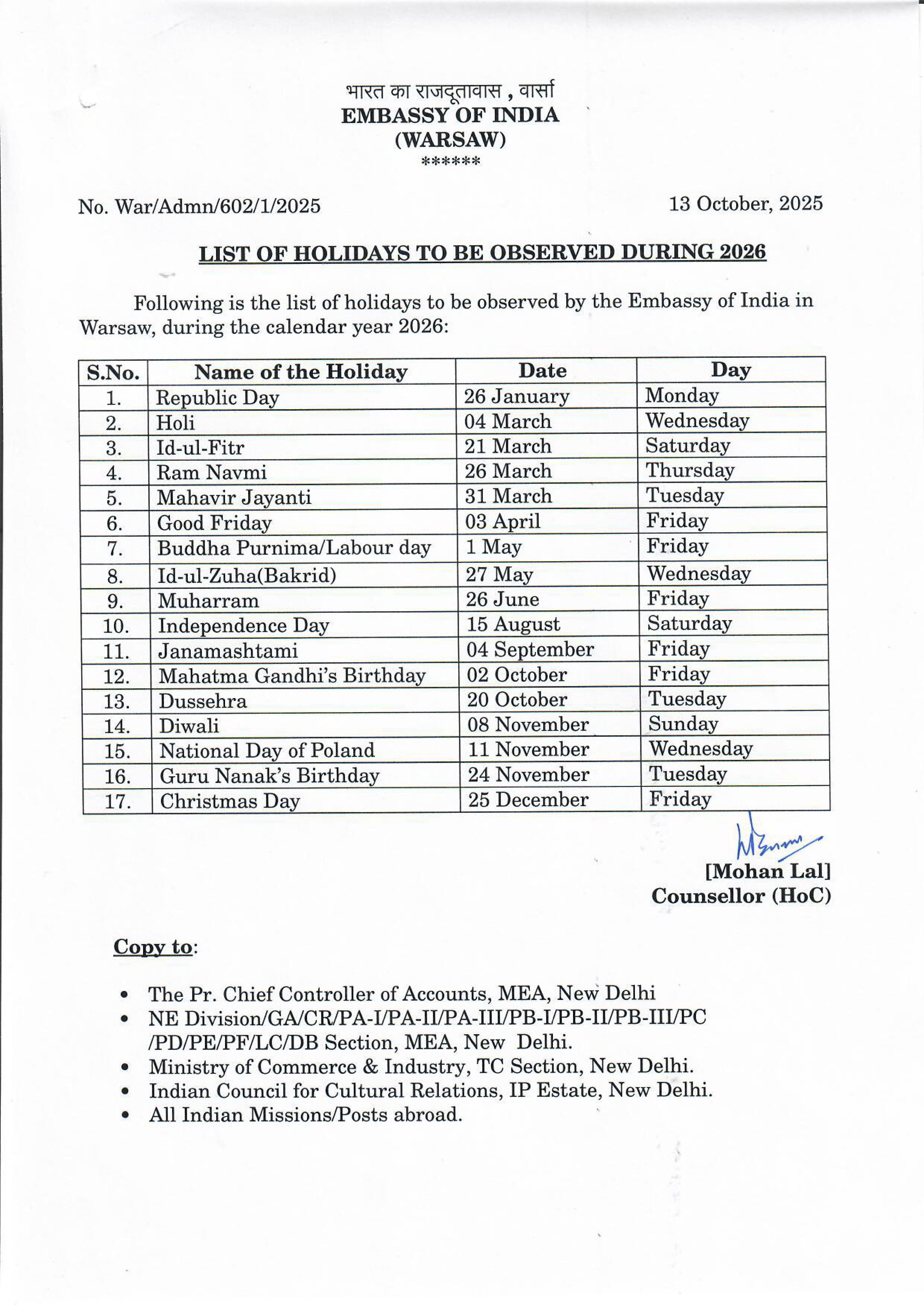 © 2025 Embassy of India, Poland. All Rights Reserved.   |   Website Security Audit Certificate